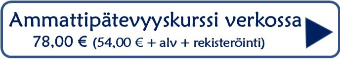 Ammattipätevyysverkkokurssi alkaen 56,00 €+alv. Rekisteröintimaksu 11,00 €. Kuljettajan ammattipätevyyden verkossa suoritat valvomon aukioloaikoina ja tarvitset tietokoneen tai mobiililaitteen lisäksi Whatsapp -yhteyden valvomoon.